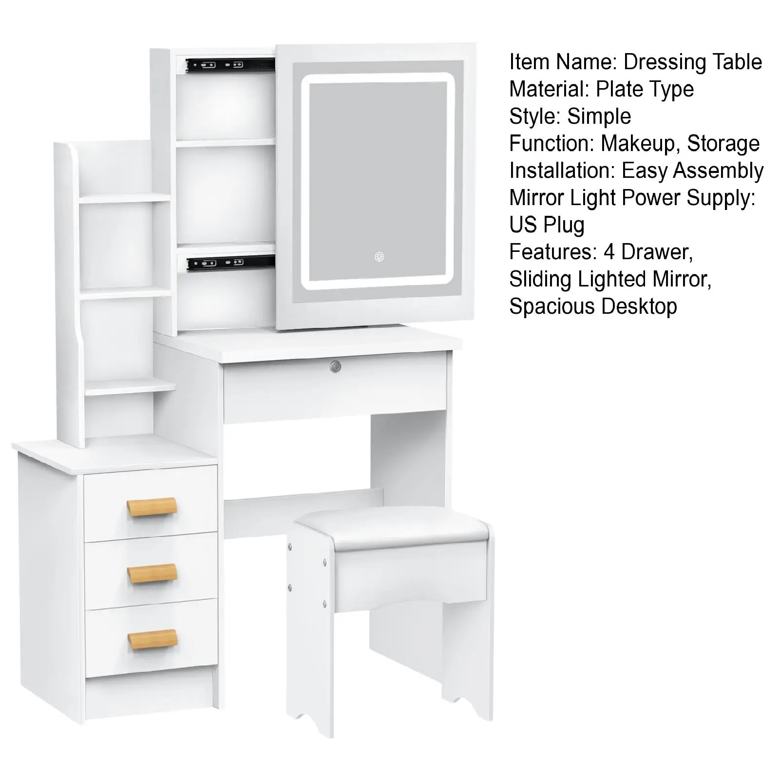 Bedroom Dressing Table Vanity Ornaments Multifunction Storage Dresser Near Bed Chambre Accessories Makeup Desk Lights Mirror