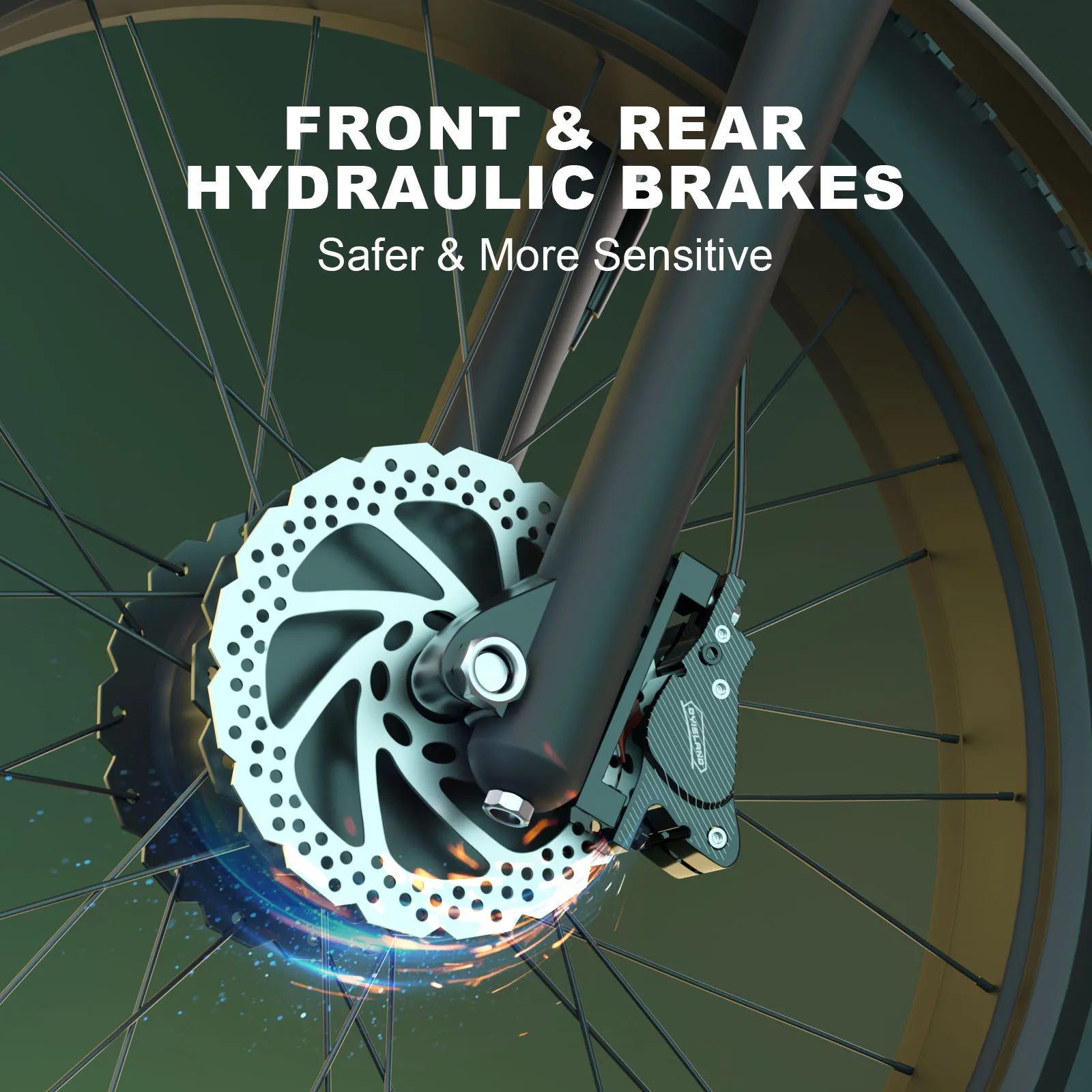 • Agile Fat Tires: 26" x 4.0" tires offer excellent grip and wear resistance, adapting to multiple riding modes.